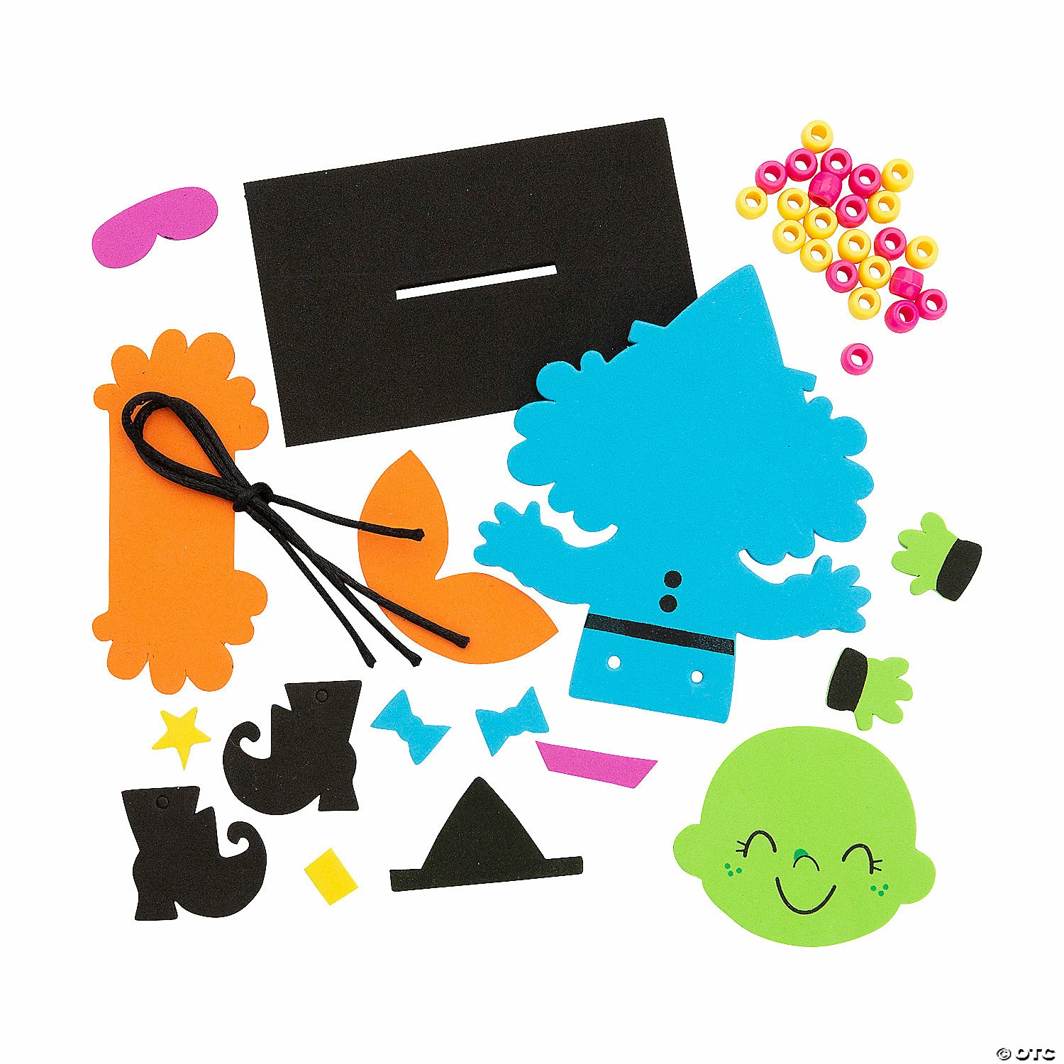 There’s nothing like a winsome witch with wibbly wobbly legs to get kids cackling. This Halloween craft activity will be an enchanting addition to your Halloween party activities or classroom projects. After kids have made their witch, they can bring them home to hang as as a kitchen witch or Halloween decoration. Includes self-adhesive foam pieces, plastic pony beads and satin cording. 4″ x 2 1/2″ x 6 3/4″ Makes 12. All craft kit pieces are pre-packaged for individual use. Kits include instructions. © OTC