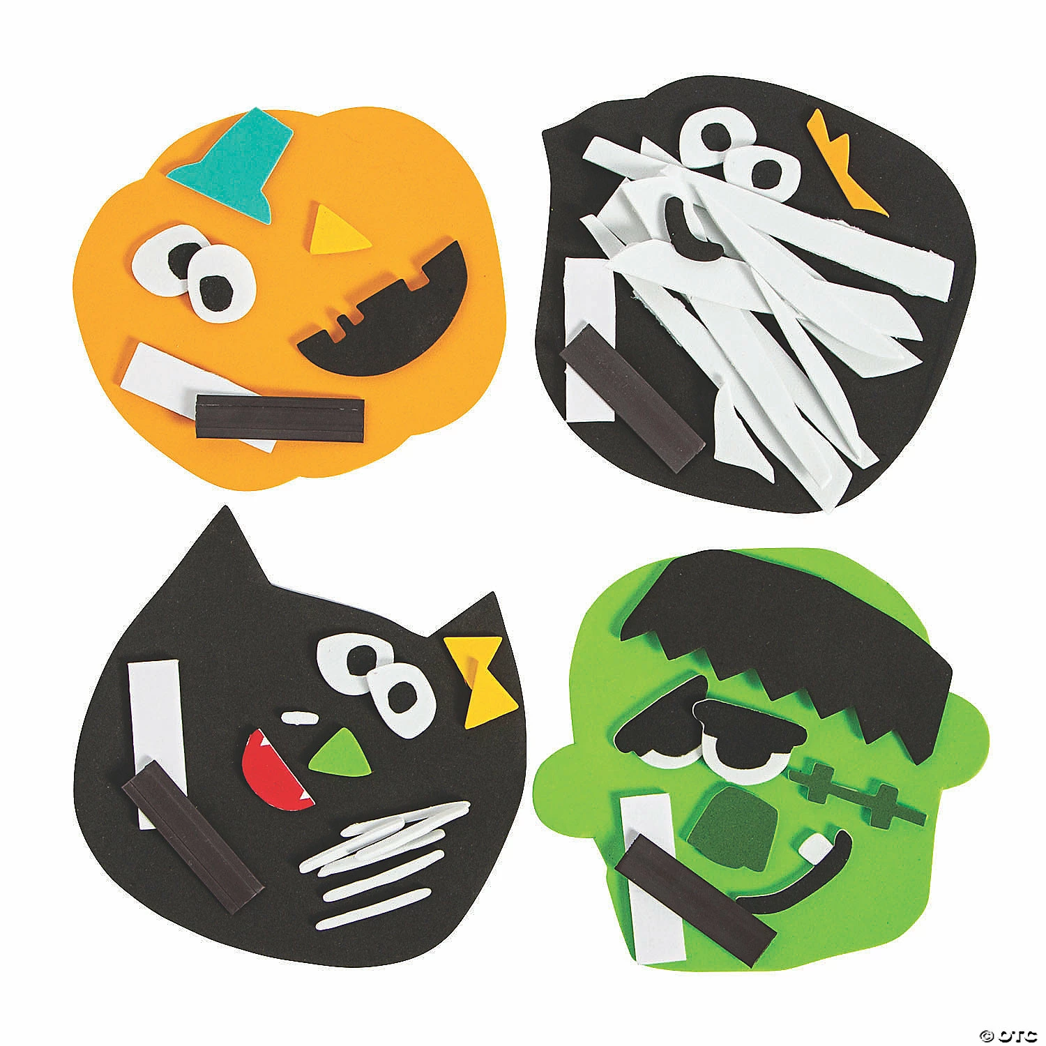 You’re in for a crafty Halloween with this Ghoul Gang Magnet Craft Kit! The assortment of Halloween crafts features jack-o’-lantern, mummy, black cat and Franken-monster character Halloween magnets. The kids’ craft kit contains everything for little monsters to make the DIY magnets, so they’re perfect for a Halloween party craft activity! Includes self-adhesive foam pieces. 5″ x 4 1/2″ Makes 12. All craft kit pieces are pre-packaged for individual use. Magnets are packaged separately. Do not discard. Kits include instructions. © OTC