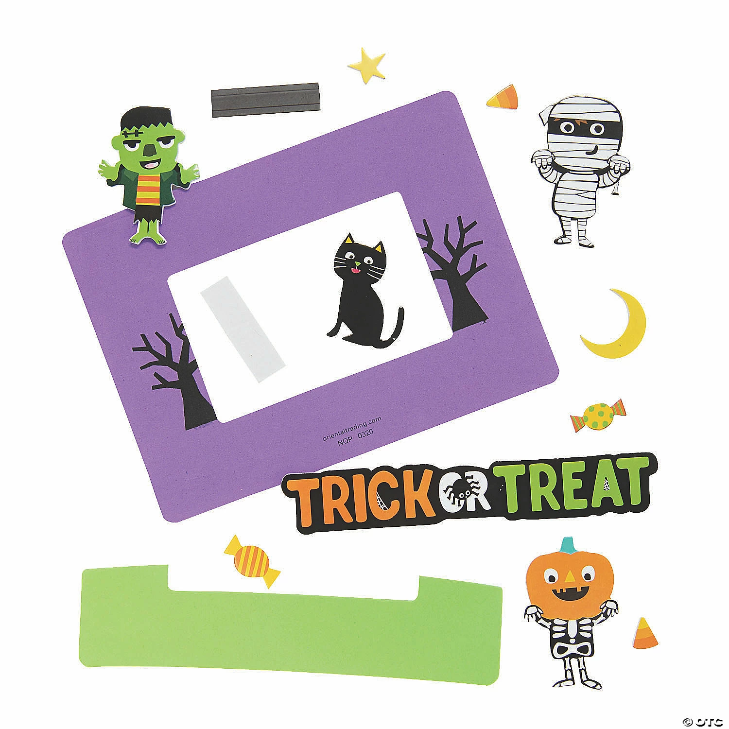 Create fun Halloween memories with this cute Halloween craft for kids! Great for classroom Halloween parties or candy alternative Halloween giveaways, simply assemble the pieces together to create a picture frame just waiting for you to fill with a photo to hang on the fridge! Includes self-adhesive foam pieces. 6 3/4″ x 5″ with a 4″ x 2 1/2″ photo space. Makes 12. All craft kit pieces are pre-packaged for individual use. Magnets are packaged separately. Do not discard. Kits include instructions. © OTC