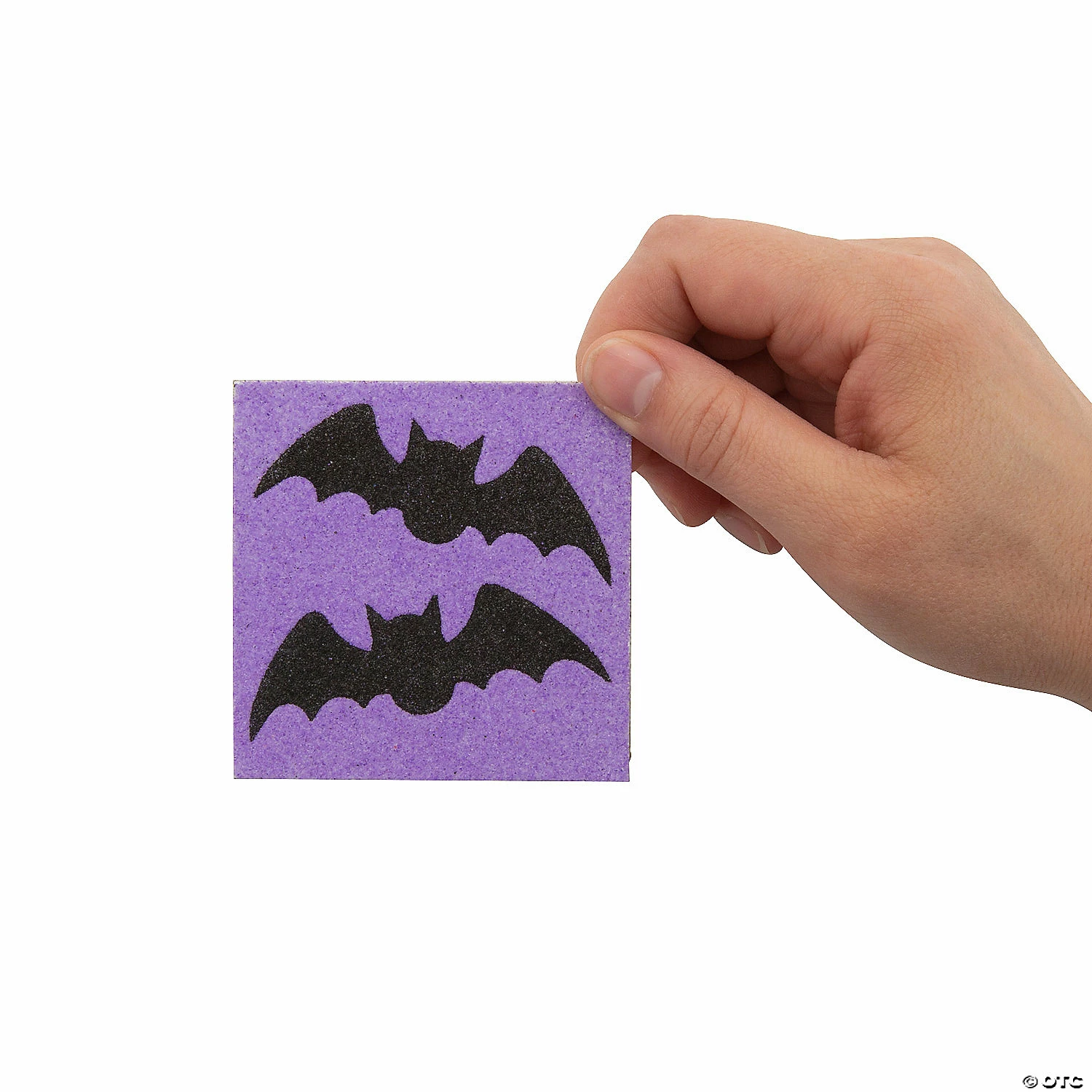 This Halloween craft puts the βchillβ in spine-chilling! This sand art set includes everything you need to help kids make some spooky sand art pictures, including a ghost, a cat, a jack-oβ-lantern, and two vampire bats. To use it, just peel off the protective covering to expose the adhesive surface and sprinkle on the colored sand! Includes assorted bags of sand. Self-adhesive cardboard. (2 dozen per unit) 3″ x 3″ Β© OTC