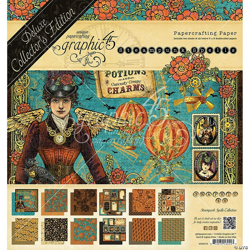 Budget β Graphic 45 Double-Sided Paper Pad 8″X8″, 24 Sheets – Steampunk Spells π