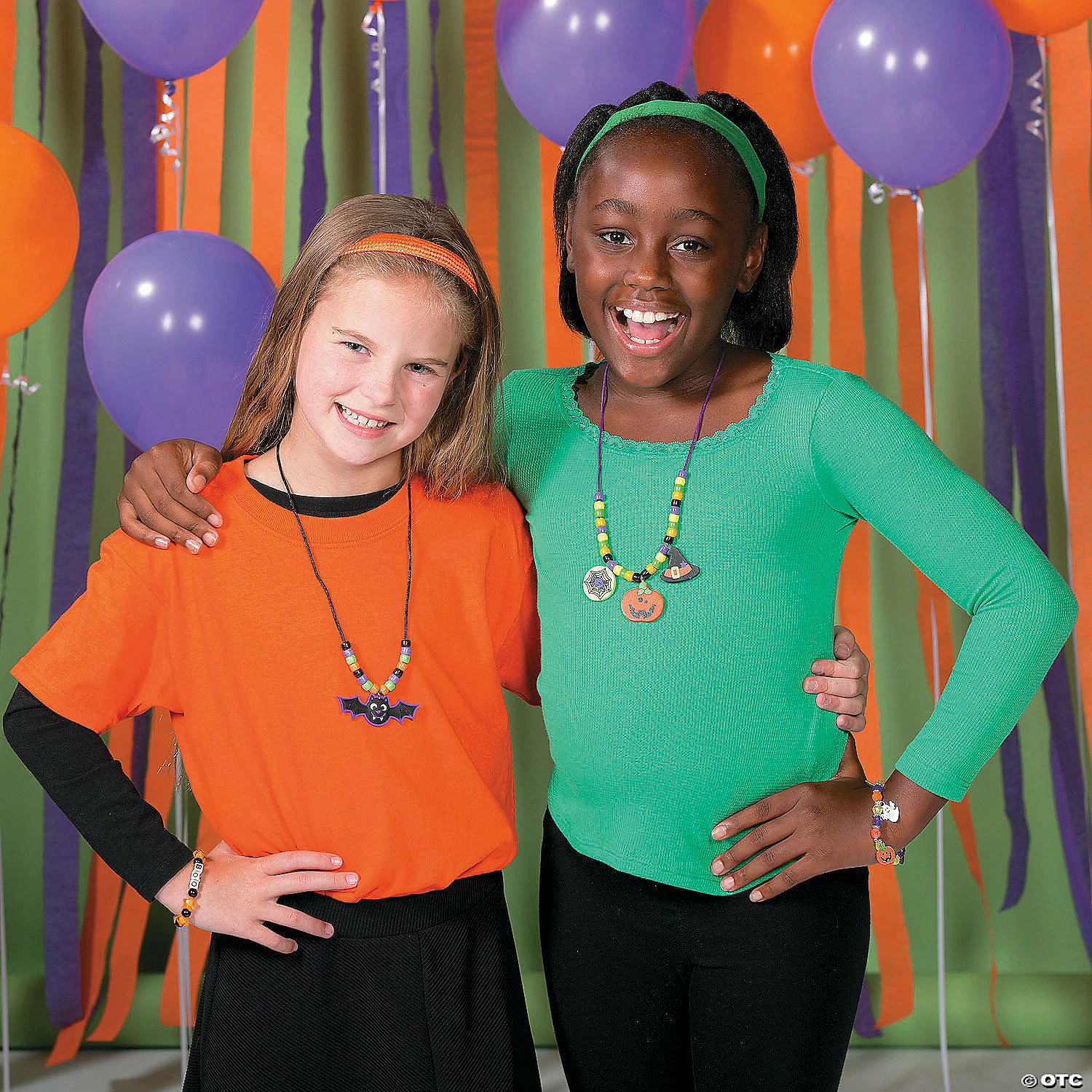 Halloween Charm Bracelet Craft Kit. Gear up for Halloween! Halloween Charm Bracelet Craft Kits include jack-o’-lantern, ghost and witch hat charms, silver separators and purple, orange and yellow beads. All craft kit pieces are pre-packaged for individual use. Kits include instructions and extra pieces. Includes 1/4″ plastic beads and 1/2″ metal charms on a 14″ stretchy cord. Makes 12. © OTC