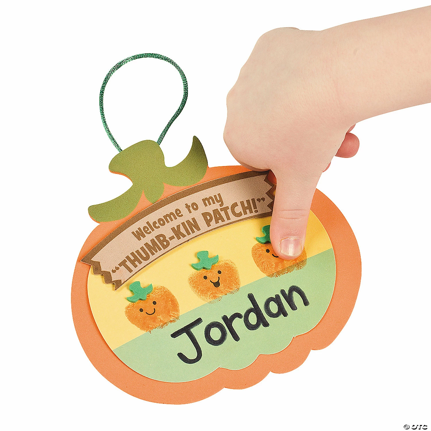 Thumbprint Pumpkin Patch Craft Kit makes fun crafts for preschoolers and toddlers as they first discover the fun of the pumpkin patch. You’ll always find the perfect pumpkins with this cool craft for kids! Each kit includes 2 orange ink pads (2 ink pads to be shared among the 12 finished projects), self-adhesive foam shapes and a satin cord. Safe and non-toxic. Personalize with your own marker! 5 1/4″ x 5″ Conforms to ASTM D-4236. All craft kit pieces are pre-packaged for individual use. Kits include instructions and extra pieces. ยฉ OTCCraft Instructions